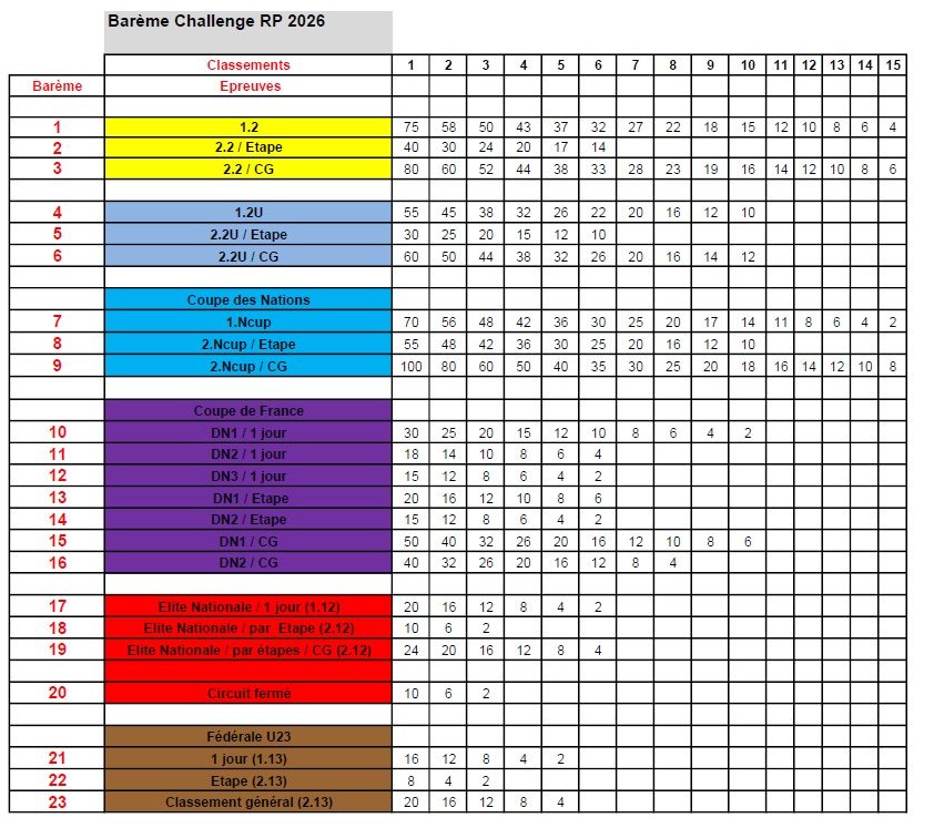 Cette 5ème édition de ce Challenge prendra en compte des résultats du cyclisme amateur au fil de la saison sur route 2026.