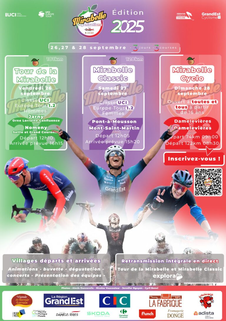 Se déroulant sur une journée en 2025, la 23ème édition du Tour de la Mirabelle se déroule à proximité de Metz, en Meurthe-et-Moselle. Les coureurs s'élancent de Jarny, pour arriver après 180,89 km à Nomeny Seille.